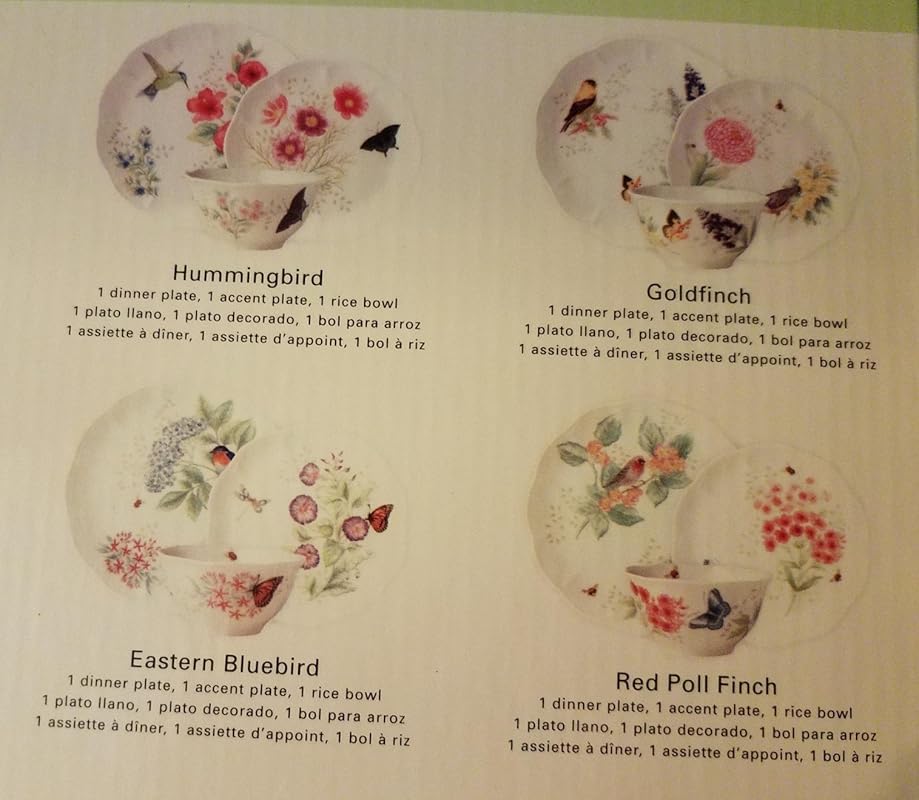 I bought this Flutter set to add to my regular Butterfly Meadow set. I absolutely love them, and wish there were more Flutter series items available. I love the birds, but wish they were present on all of the dishes, not just the dinner plates and one accent plate. The weight and feel of the Butterfly Meadow series of dishes is simply perfect. They make me so happy. My only complaint is the bowls they include in these sets are the small rice bowls; they should come with standard-size, more useful cereal bowls (Lenox sells them as ice-cream bowls. They’re just right). Nevertheless, these are wonderful dishes.