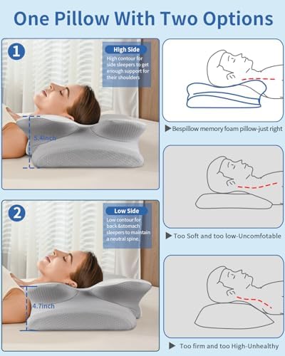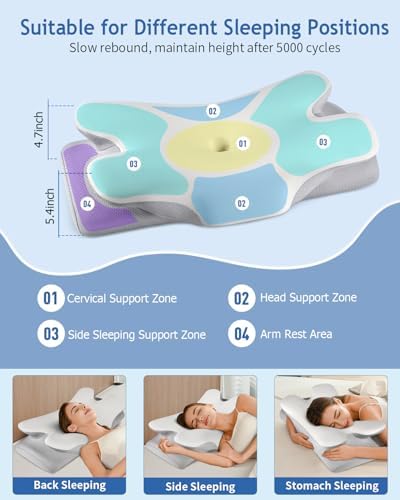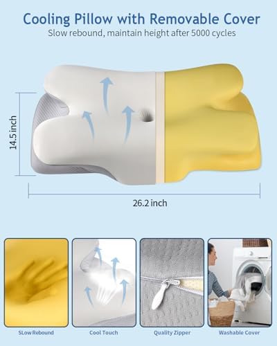 Cervical Neck Pillow 4 key for Pain Relief Sleeping, Cooling Ergonomic Contour Side Sleeper Pillow