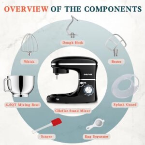 Mix like a pro at home with the CHeflee Stand Mixer,660W. Designed for everyday baking, it features a spacious 6.5QT bowl, precision speed control, and essential attachments like a dough hook—making prep faster, easier, and cleaner.