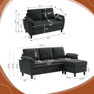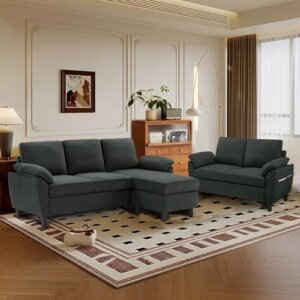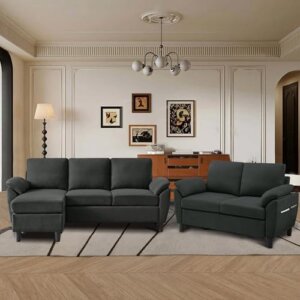Our sofas come with all the necessary tools and easy-to-follow instructions, so you can assemble them in just 25 minutes. Transforming your living space has never been easier! Modern Convertible Sofa Set: Come in three box. Measuring 3-Seater sofa size is 52.76″D x 79.53″W x 34.25″H. Loveseat size is 56.9″D x 29.7″W x 35.2″H.Before Purchasing Please Ensure Dimensions Meet Your Requirements.