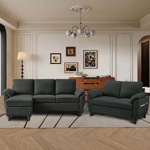 Modern Convertible Sofa Set: Come in three box. Measuring 3-Seater sofa size is 52.76"D x 79.53"W x 34.25"H. Loveseat size is 56.9"D x 29.7"W x 35.2"H.Before Purchasing Please Ensure Dimensions Meet Your Requirements.