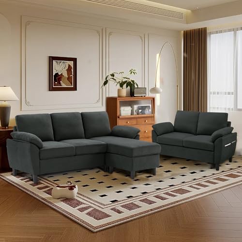 Convertible Sectional Sofa Set, Modern L Shaped 3 Seat Sofa