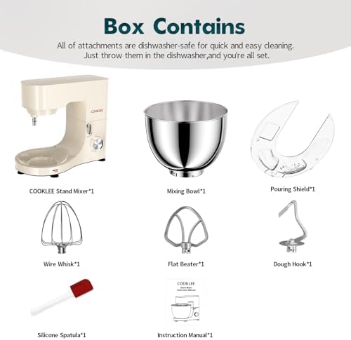 Built with a sleek finish and durable materials, the COOKLEE 9.5 Qt Stand Mixer not only performs well but also looks great in any kitchen. Its sturdy construction ensures long-lasting use, making it a reliable choice for both occasional bakers and daily cooking.
