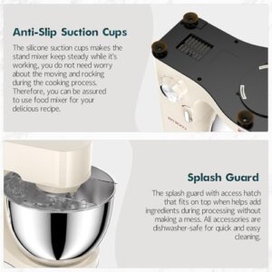 The extra-large stainless steel bowl is perfect for family-size portions and bulk baking. With its 9.5-quart capacity, you can mix up to several dozen cookies, multiple loaves of bread, or large batches of whipped cream without hassle. The bowl’s sturdy design ensures stability, even during heavy mixing.