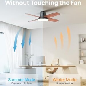 Dreo Ceiling Fans with Lights and Remote, 44 Inch Low Profile, Black Flush Mount Bedroom Ceiling Fan