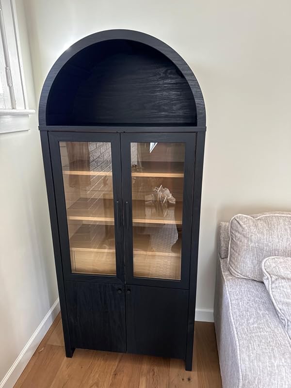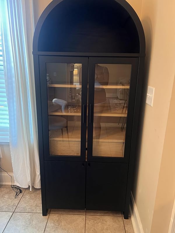 the Evie Arched Display Cabinet adapts to your needs, perfect for showcasing books and collectibles that reflect your personal style MODERN FARMHOUSE CHARM – Ideal for the living room, hallway, or even dining area, this modern cabinet’s sleek laminate finish and sophisticated profile add a contemporary flair to any room