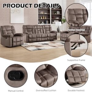 Seat Cushion Fabric Recliner Manual Sofa Set