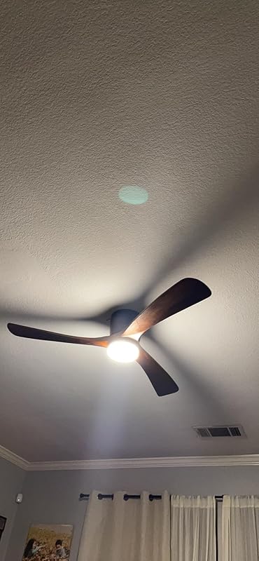 Love the easy installation! Design and the wood was a perfect match for our home. Very quiet & very pleased with the light feature, that you can dim. Also love the fact that the fan can be controlled with a remote for speed. All around a five star purchase for the money.