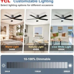 10 reviews for how to install a ceiling fan with a remote control, TCL 52″ Ceiling Fan with Lights, Black Flush Mount Ceiling Fans with Remote Control