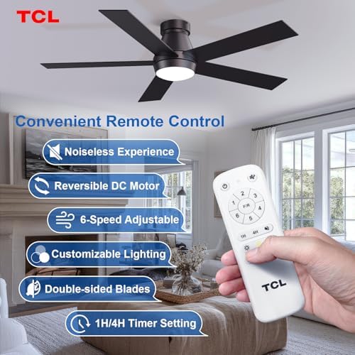 how to install a ceiling fan with a remote control, TCL 52″ Ceiling Fan with Lights, Black Flush Mount Ceiling Fans with Remote Control
