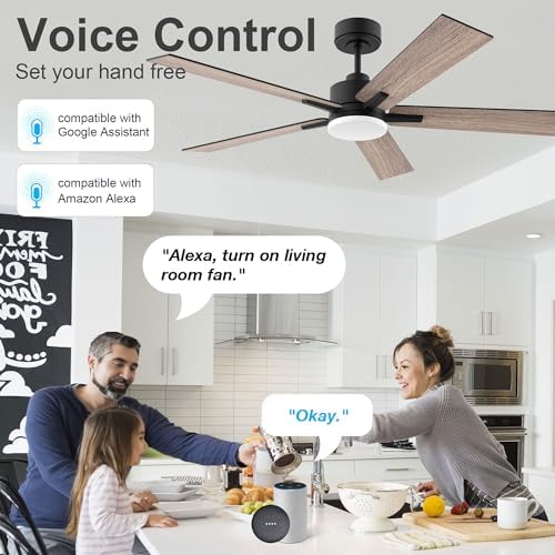 We installed this 72” ceiling fan in our living room, and we love it! It looks beautiful with its white and wood finish, and the large size is perfect for our high ceilings. The fan is quiet, moves a lot of air, and the light is nicely dimmable.One of our favorite features is how smart it is — we can control it with Google Assistant or Alexa or from our phones if we are away from home, which makes it super convenient. No more hunting for the remote (though it comes with one, too)! The installation went smoothly, and it’s been working great ever since. I highly recommend it to anyone looking for a modern, reliable, smart ceiling fan for big rooms.