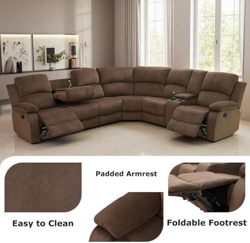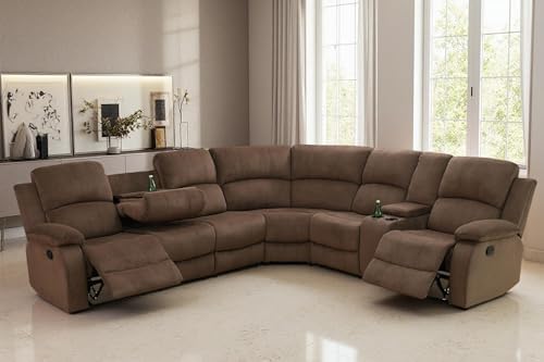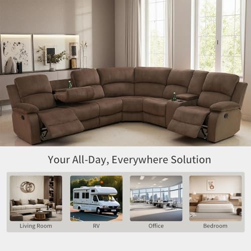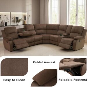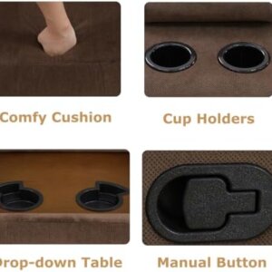 The sofa can adjust the backrest angle through buttons and switch between different modes. The storage console and the cup holders can hold beverages and cups, which is convenient and practical. The sofa is equipped with drop down table in the middle. Flexible Adjustment: