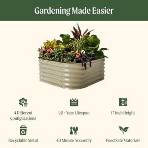 Raised Garden Bed Kit, 17″ Tall 4 in 1 Modular