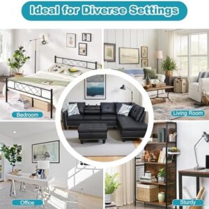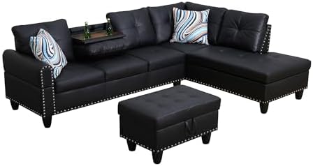 Lyngins Couches for Living Room Faux Leather L Shaped Couch Comfy 3 Pieces Sectional Sofa with Chaise, Ottoman with Storage for Office and Small Apartment, Graceful Black
