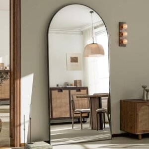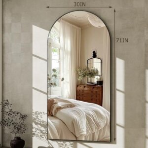 About this item EXTRA LARGE FLOOR MIRROR – The arched full length floor mirror features a modern style that can complement any type of room decor, adding a touch of elegance to your space while also making it feel more open and bright.