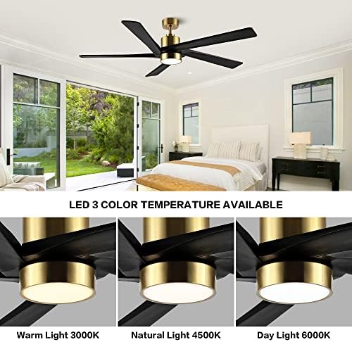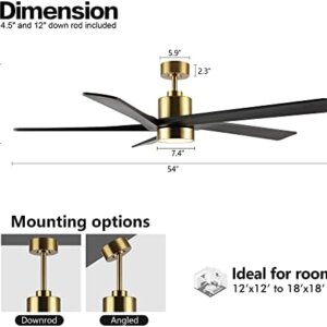 WINGBO 54 Modern Ceiling Fan with Light & Remote, Quiet DC Motor, Brass & Black