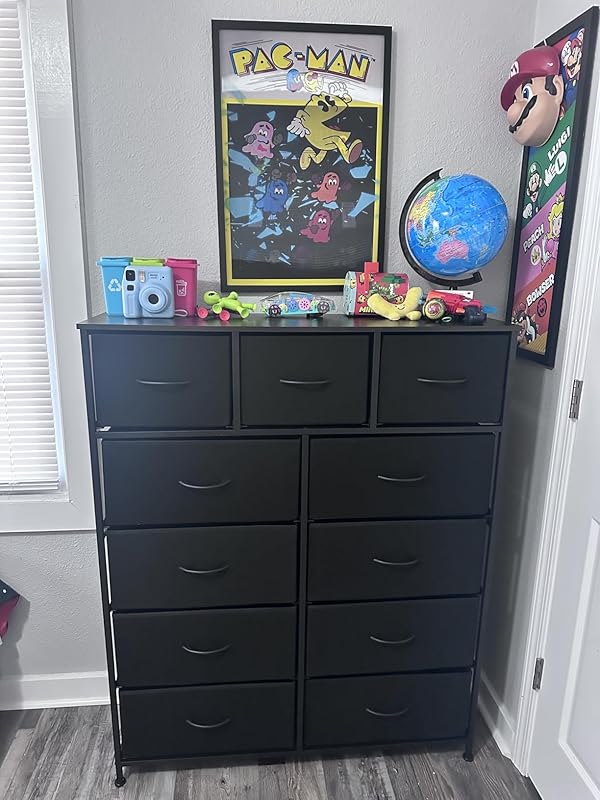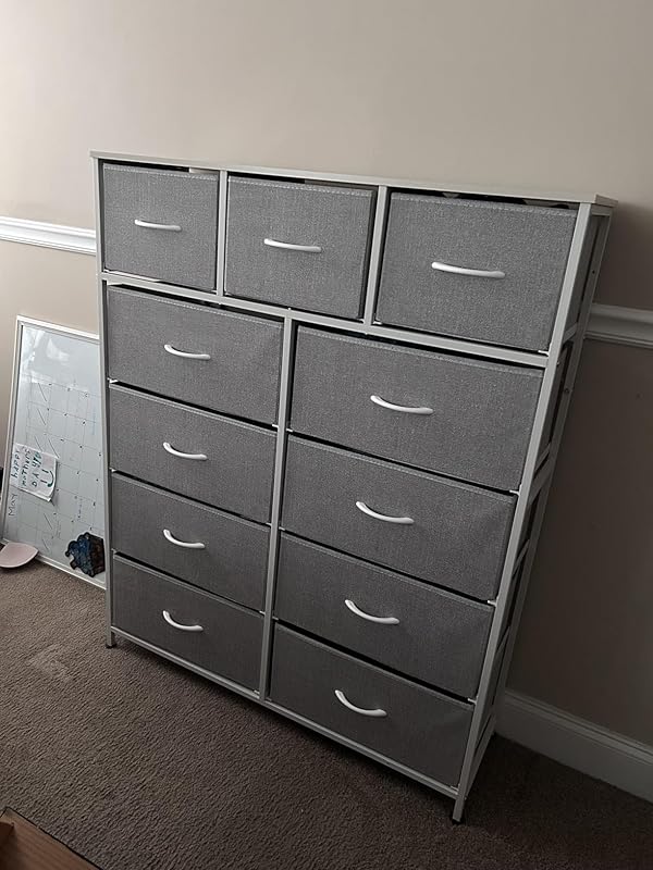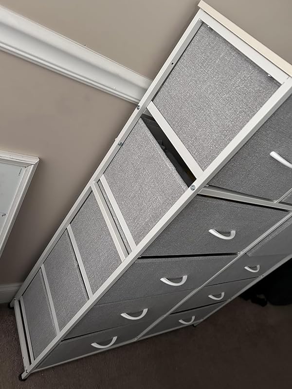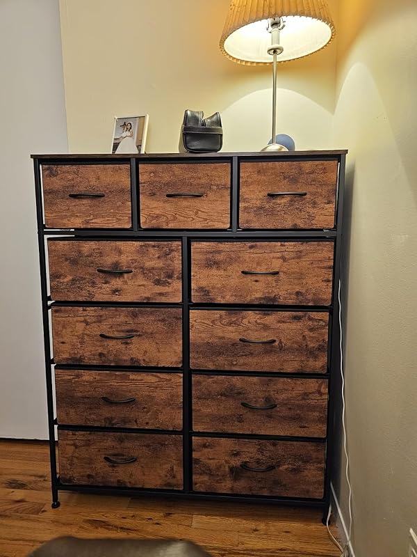 I couldn’t be happier with the WLIVE Tall Fabric Dresser it’s the perfect blend of functionality, style, and affordability. With 11 spacious drawers, it provides an impressive amount of storage without taking up too much floor space. I use it in my bedroom, but it would work just as well in a hallway, closet, or even a nursery.Assembly was straightforward and quick, and the instructions were clear. The steel frame makes it very sturdy, and the wood top is a nice touch perfect for a lamp, décor, or daily essentials. The fabric drawers slide smoothly and hold a surprising amount of clothes, accessories, and even small household items.The neutral design fits in perfectly with modern or minimalist décor, and the overall unit feels very stable and secure, even when full. It’s great for people who want more storage without the cost or weight of a traditional dresser.If you’re short on space but need serious storage, this dresser is a smart and stylish solution. Highly recommend!