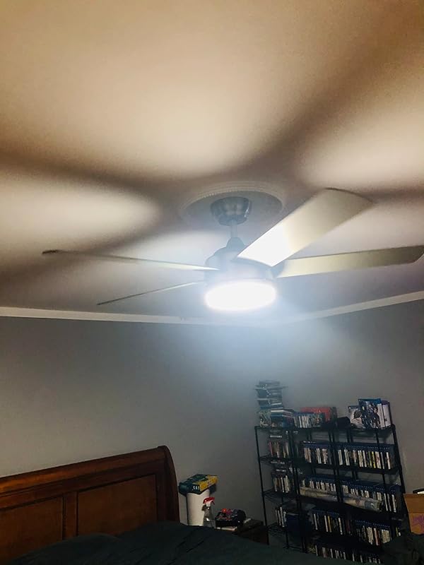 This ceiling fan is packed with features, is very quiet, and the fan and light work very well. I’m a little disappointed with a couple small details. You can see from the video that the fan housing is a little warped because the gap between the motor housing and the light opens and closes as the fan rotates. Also, the fan that I replaced, and the other white ceiling fans that I have in my home have white hanging balls, not black. In my opinion, a white ceiling fan should have a white hanging ball to make it look more finished.