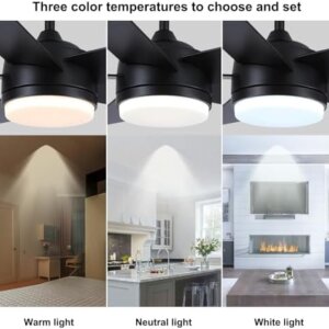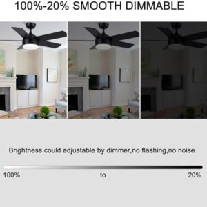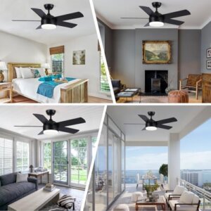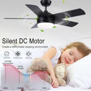 YUHAO 44 Inch Black Ceiling Fan with Light and Remote Control.Noiseless,Dimmable,3CCT,6 Speeds Reversible