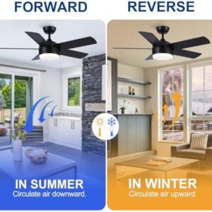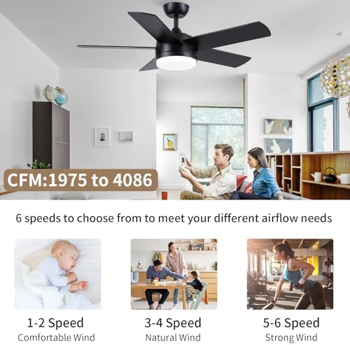 Upgrade your space with the YUHAO 44 Inch Black Ceiling Fan, designed to deliver modern style, powerful airflow, and year-round comfort. Perfect for bedrooms, living rooms, and offices, this sleek fan combines quiet performance with advanced lighting features.