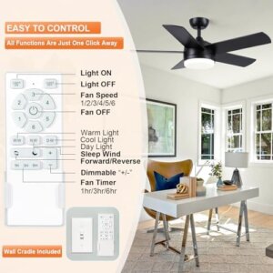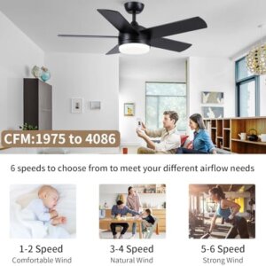The included remote control makes it easy to adjust fan speed, lighting, and direction from anywhere in the room. Built for efficiency and comfort, this YUHAO 44 Inch Black Ceiling Fan  noiseless ceiling fan ensures a peaceful environment while enhancing your home décor.